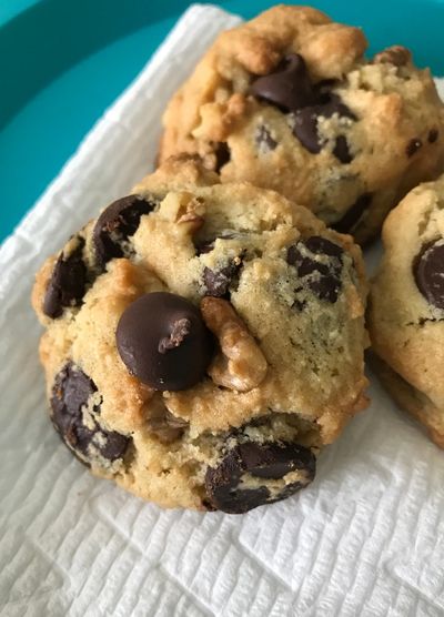 I found this recipe on the back of the almond flour I buy from Trader Joe's. I've made a few minor changes over the years in case you pick up the almond flour yourself and notice the small differences. For a while I was making these weekly for the kids since they are super easy to make, store well, and are delicious! Give them a try if you are looking for a sweet treat that is a healthier version of the chewy chocolate chip cookie.